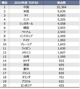 1.3. グローバルに見る拠点数上位の国 TOP20(2024年度)