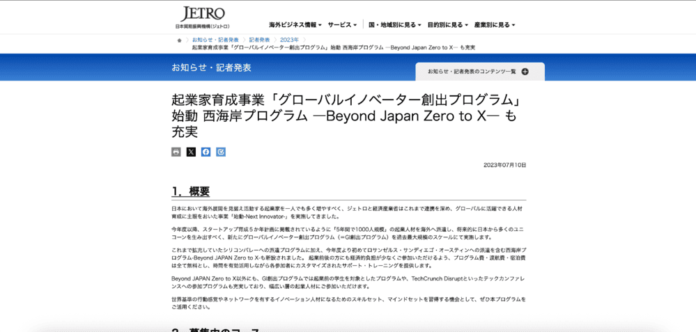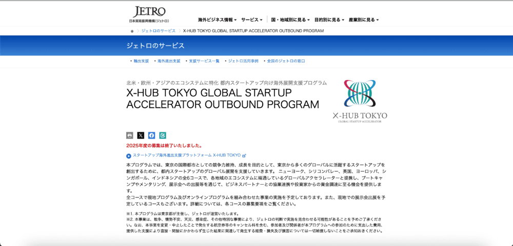 - 1.3.21. X-HUB TOKYO GLOBAL STARTUP ACCELERATOR OUTBOUND PROGRAM(無料)