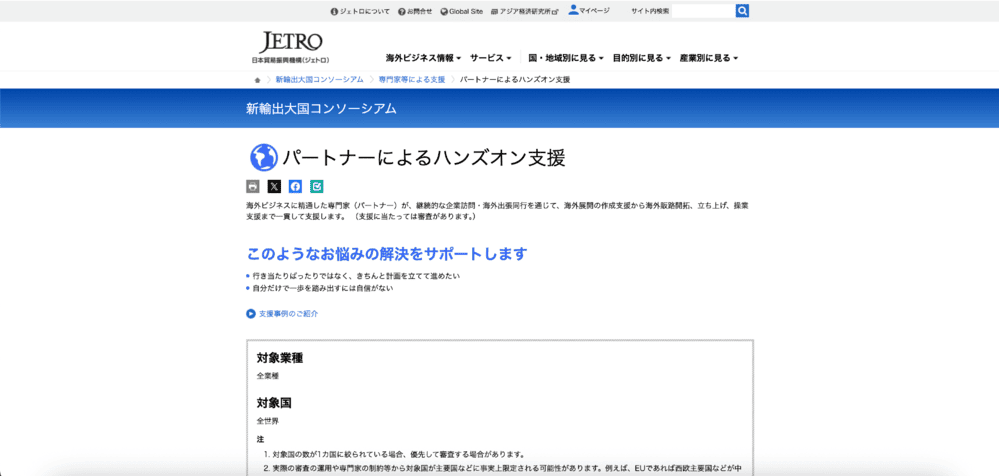 - 1.3.8. 「新輸出大国コンソーシアム」専門家による個別支援サービス(無料)